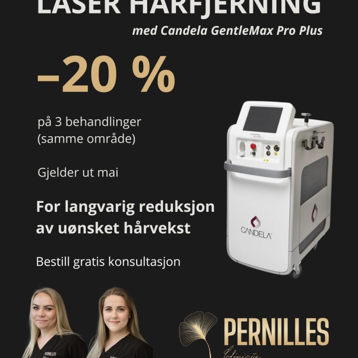 Laser hårfjerning med Candela GentleMax Pro Plus – en av markedets mest avanserte og effektive lasere. Gir skånsom og langvarig reduksjon av uønsket hårvekst. Gratis konsultasjon før oppstart.